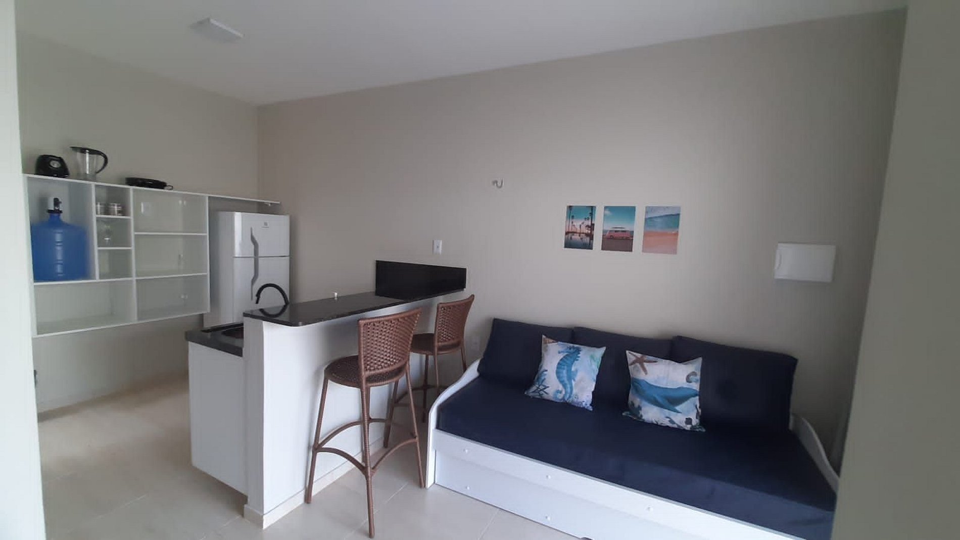 Relaxe neste espaço calmo e cheio de estilo. Apartamento completo: quarto com cama queen, ar-condicionado, Tv girátoria (atende quarto e sala); sala com sofá cama; cozinha completa com tudo que você precisa para preparar suas refeições; lavanderia com tanque e varal; varanda com churrasqueira e vista para piscina. Piscina maravilhosa com cascata e iluminação especial. Tudo isso pertinho da praia!!!!