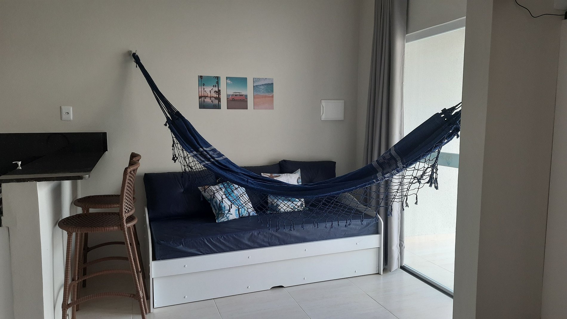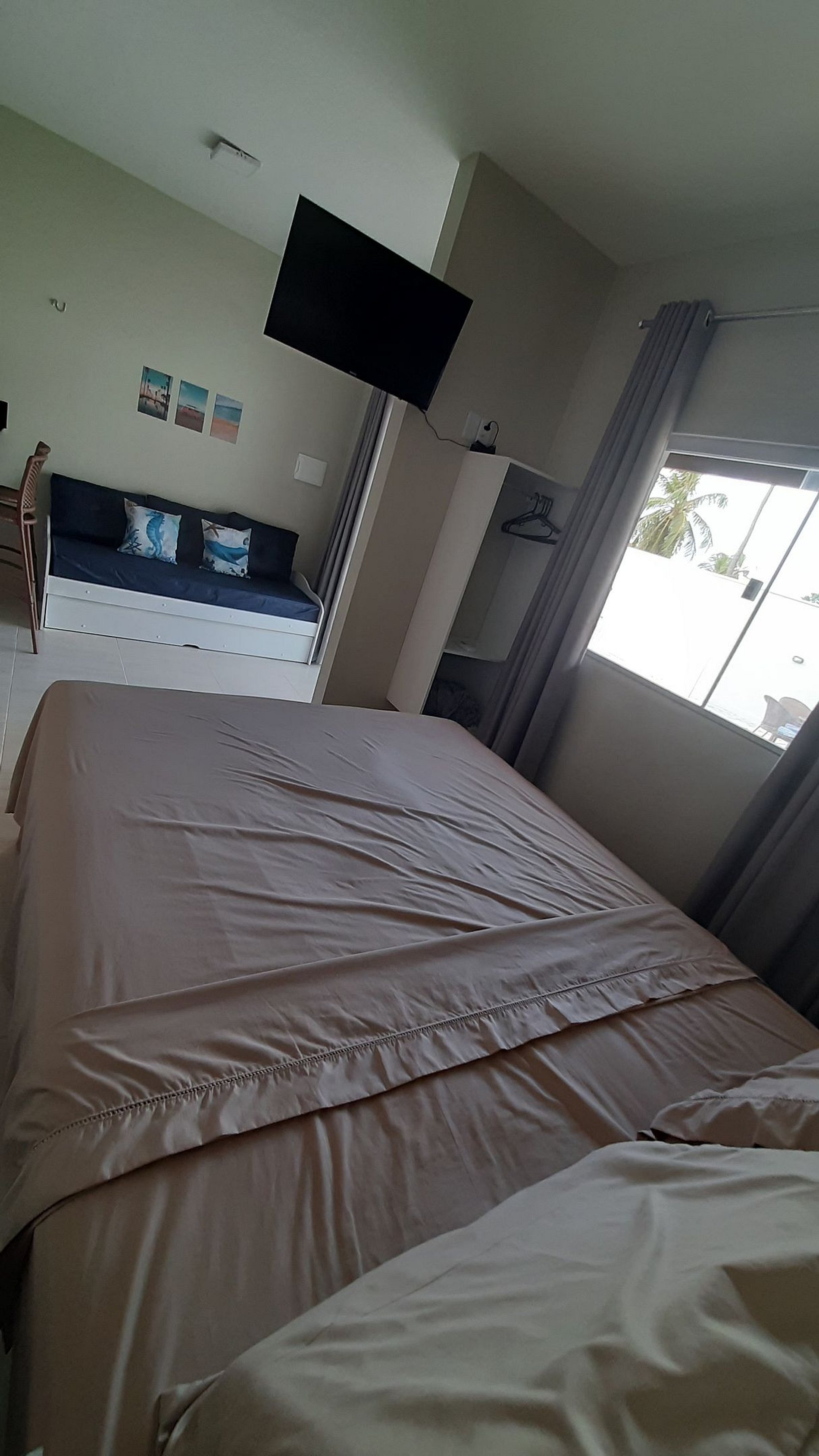 Relaxe neste espaço calmo e cheio de estilo. Apartamento: quarto com cama queen, ar-condicionado, Tv girátoria (atende quarto e sala); sala com sofá cama; cozinha completa com tudo que você precisa para preparar suas refeições; lavanderia com tanque e varal; varanda com churrasqueira e vista para piscina. Piscina maravilhosa com cascata e iluminação especial. Tudo isso pertinho da praia!!!!