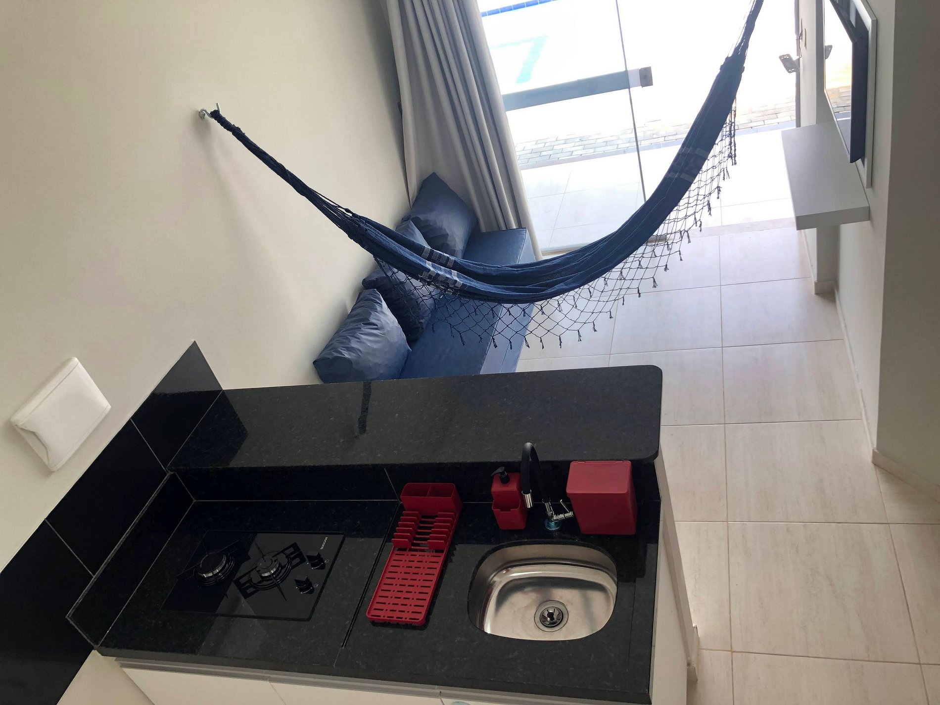 Relaxe neste espaço calmo e cheio de estilo. Apartamento: quarto com cama queen, ar-condicionado, Tv girátoria (atende quarto e sala); sala com sofá cama; cozinha completa com tudo que você precisa para preparar suas refeições; lavanderia com tanque e varal; varanda com churrasqueira e vista para piscina. Piscina maravilhosa com cascata e iluminação especial. Tudo isso pertinho da praia!!!!